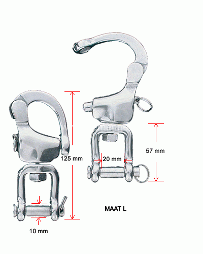 L (cob/full) lengte 125 mm ; breedte 20 mm ; dikte sluitpin 10 mm